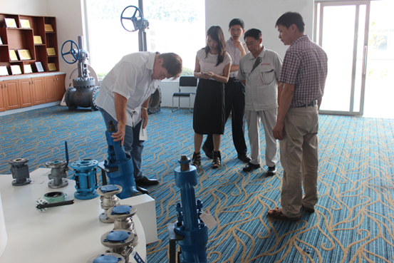 在卓金堤總經理的親自陪同下,首先實地考察了蝶閥生產車間及產品檢驗中心等。在整個參觀過程中卓總為客戶現場講解了公司整套生產及檢驗流程,并解答了客戶提出的技術細節問題。美國客人此行對我司蝶閥的生產流程、加工工藝、質量檢驗等各方面開展了考察和信息交流工作。期間,雙方就國內外的球閥生產現狀及發展做了相關討論。美國客人對自己公司的情況也作了介紹,雙方互相交流、溝通。