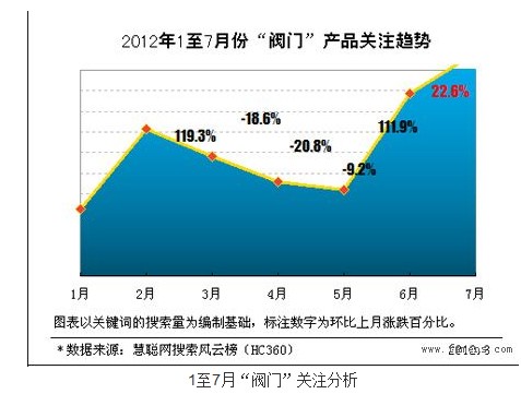 依據搜索風云榜,我們針對閥門產品進行搜索分析,看看買家對于閥門的需求情況怎么樣?梢酝ㄟ^買家的搜索量了解整個閥門行業的淡量情況。 通過圖表,我們可以看出,對于閥門的需求,出現三個增長點,分別是2月份、6月份及7月份,近期觀察,6月份搜索關注增長比例最高,達到111.9%,究其原因,我們通過調查分析,歸結為建筑維修、裝修等項目對于閥門需求增大。6月份是各大小區進行加固及增加保溫層的季節,也是家居裝修旺季,除此之外,各大工程項目開閘,這些都加大了對于閥門的強勁需求。 閥門行業旺季已經到來,根據圖表觀察,8月份,仍將是閥門行業需求高潮,高度需求或許會持續到10月底,閥門企業可以把握好這個機會,好好賺一把吧! |