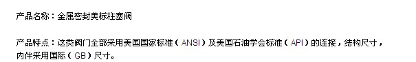 金屬硬密封美標柱塞閥