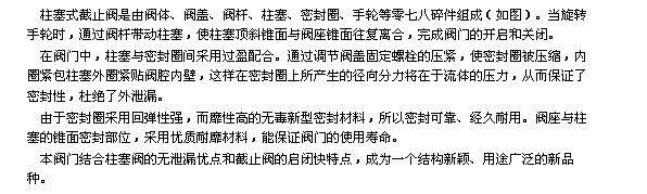 高壓柱塞截止閥
